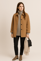 Ten stylowy krótki płaszcz jest dostępny w trzech klasycznych neutralnych kolorach: Czarny, Beżowy i Camel. Jest oferowany w wyrafinowanym zakresie rozmiarów od S-XL. Prosimy o zapoznanie się z naszą szczegółową tabelą rozmiarów, aby uzyskać najlepsze dopasowanie.