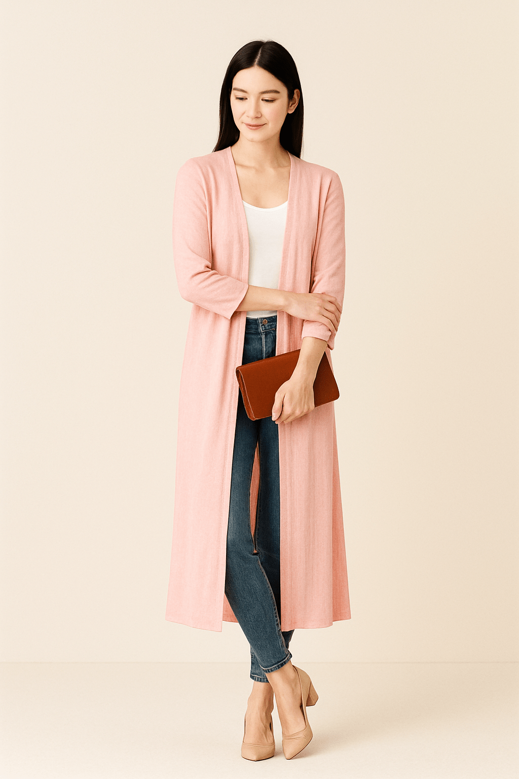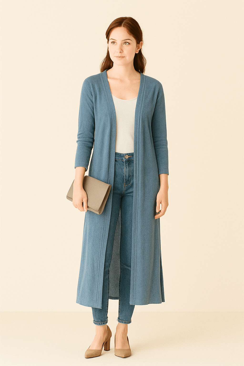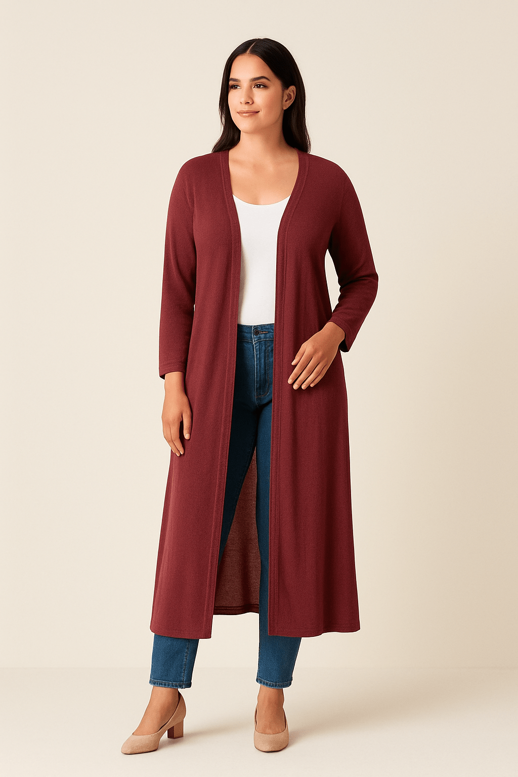 Damski Kardigan Maxi Długi - Otwarty Przód i Długie Rękawy