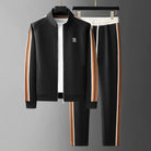 Męski Komplet Dresowy - Kurtka na Zamek i Spodnie z Kontrastowymi Paskami