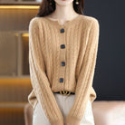 Damski Dzianinowy Kardigan na Guziki - Sweter ze Wzorem Warkoczowym