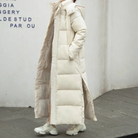 Damska Płaszcz Maxi Pikowana - Ocieplany Z Kapturem