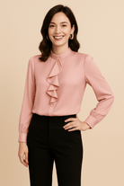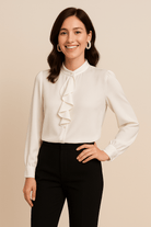 Dodaj odrobinę finezji do swojego stroju formalnego! Zamów Damska Bluzka Z Falbankami już dziś!