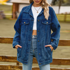 Damska Długa Kurtka Jeansowa - Luźny Fason z Guzikami